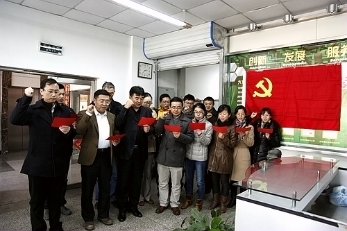 随后,在公司大厅,所有教工党员和校友宋大龙在学院党委书记许世超的带领下,面对鲜红的党旗,重温了入党誓词,表达了对中国共产党的忠诚和坚定信仰,表明了“在岗位上践行宗旨、在实干中锤炼党性”的决心。