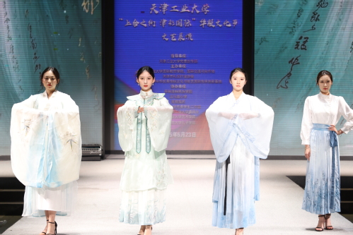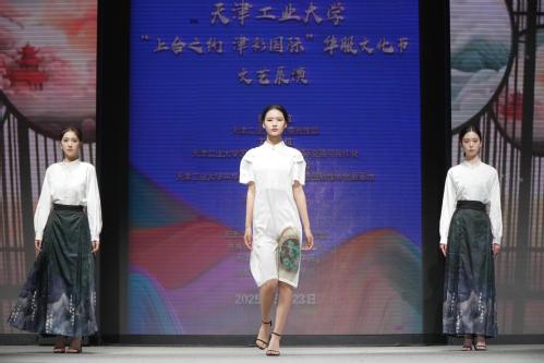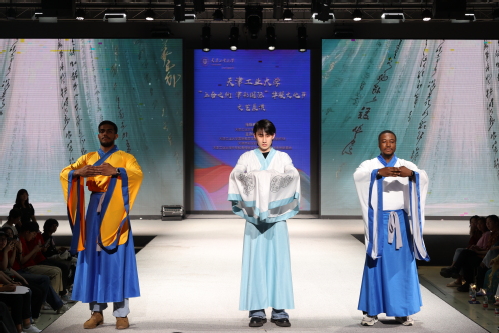 5月23日下午,“上合之约·津彩国际”华服文化节在我校艺术学院动态展示厅盛装启幕,本次文化节由我校和天津市礼仪行业协会共同主办,呼和浩特民族学院、天津市南开区五马路小学、荣程集团协办。现场衣袂翩跹,来自中国、俄罗斯、印度、哈萨克斯坦等30多个国家的200余名师生欢聚一堂,以舞传情、以歌为媒、以衣载道,共绘文化交融新画卷。