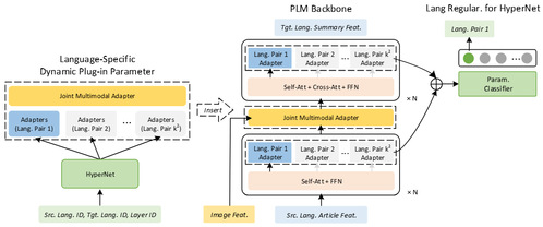 近年来,多对多语言多模态摘要(M3S)因其支持多语言输入输出的统一建模引起关注。现有方法在共享模型参数基础上转移通用MS知识的同时往往忽略语言特有知识,不同语言间可能产生干扰,限制模型对多语言组合灵活适应。《Language Constrained Multimodal Hyper Adapter For Many-to-Many Multimodal Summarization》(刘那与老师为第一作者)一文研究了多模态摘要(MS)通过融合文本与视觉信息生成更丰富的内容,提出语言约束的多模态超网络适配器(LCMHA),通过语言正则化超网络引导语言特定适配器融入多语言主干模型来放宽不同语言组合参数共享,结合共享多模态适配器保持不同语言适配器特征和公共视觉特征交互。实验表明,LCMHA在多种多语言预训练模型主干上展现出良好效果和可扩展性。