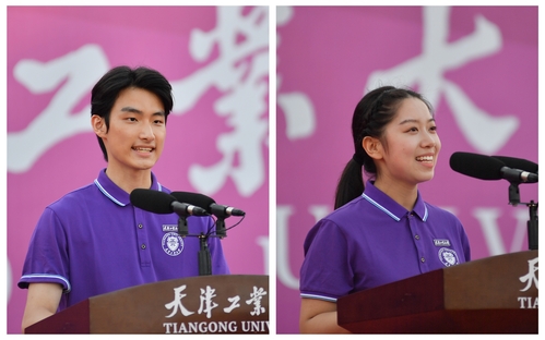 电子与信息工程学院通信H2503班学生祁子瑞、马克思主义学院2025级硕士研究生陈芝恺分别代表本科生和研究生新生发言。他们从不同视角表达了以“新”姿态重新定义人生新起点的美好憧憬,以实际行动开启在天工求知新征程的奋斗精神。